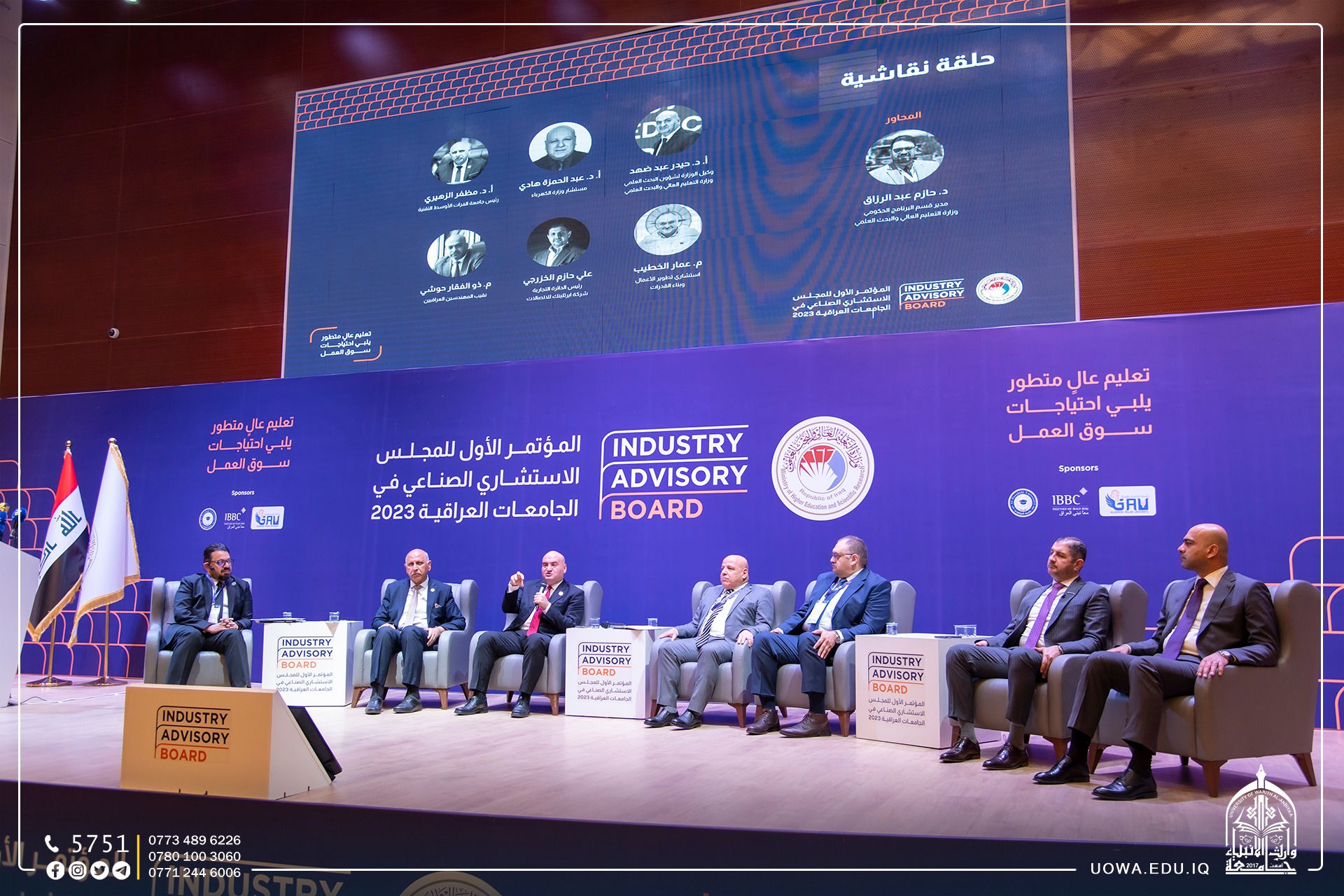 Under the patronage of the Minister of Higher Education and Scientific Research, Dr. Naeem Al-Aboudi, a delegation from the University of Warith Al-Anbiyaa (Peace Be Upon Him), led by Professor Dr. Ibrahim Al-Hayawi, participated in the launch of the "First Conference of the Industrial Advisory Council in Iraqi Universities." The conference is organized by the Ministry of Higher Education and Scientific Research.