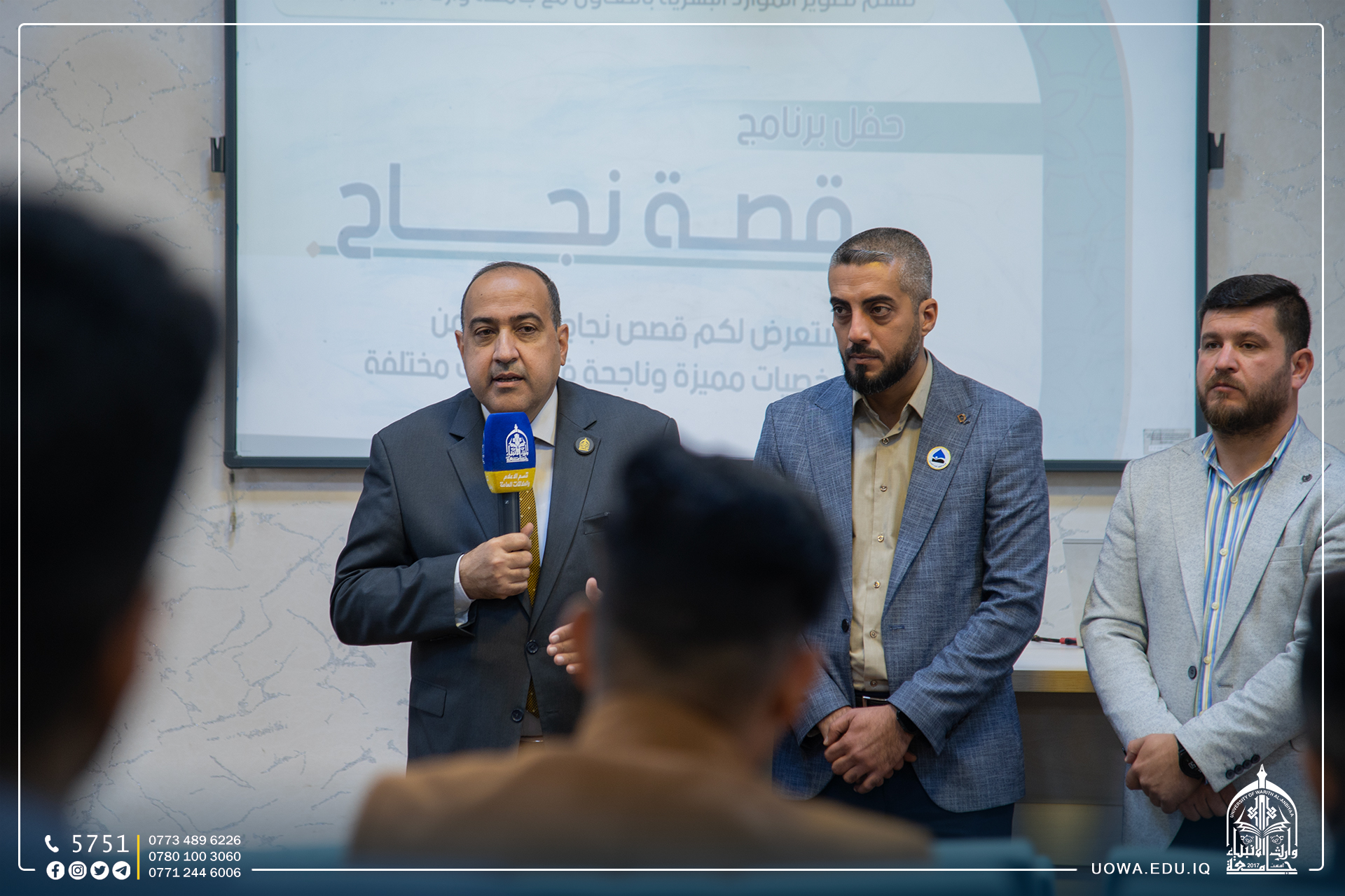In the presence of Mr. Ibrahim Al-Hayawi, the President of the University, the Department of Student Activities at the University of Warith Al-Anbiyaa (peace be upon them) is organizing an event to honor the university students who have excelled in the "Success Story" program. The program was conducted in collaboration with the Youth Care Center in the Department of Human Resources Development at the Holy Shrine of Imam Hussain.