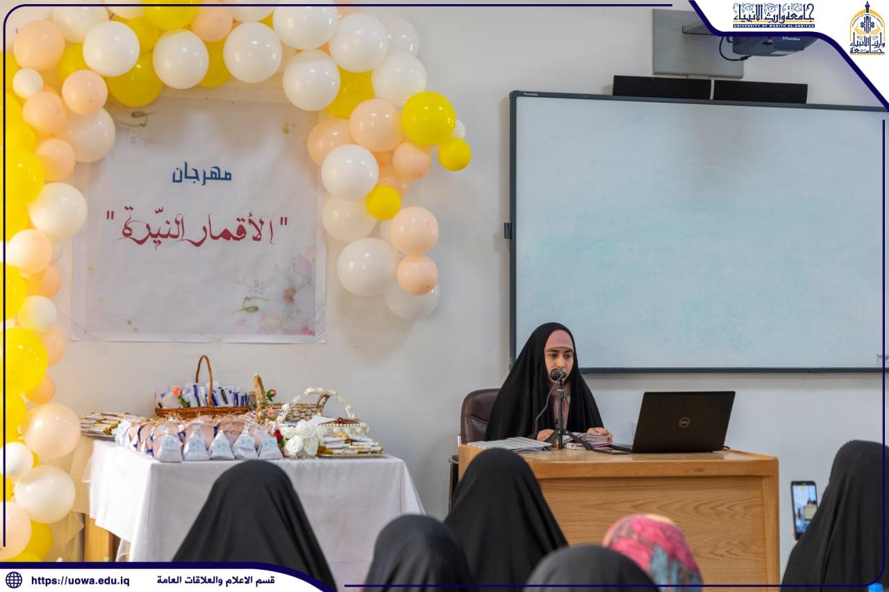 In celebration of the birth of the Sha'banian Moons, the Biomedical Engineering Department, in collaboration with Al-Aqeela Zainab (Peace Be Upon Her) School in Khanaqin, organized a women's festival titled "The Bright Moons." The festival was attended by human development trainers from Board Skills in Germany and included various segments, such as a recitation of Quranic verses by Hafiza Zehra Zaher Al-Saadi, followed by a motivational lecture by Trainer Janan Salman Haider to encourage students in their religious commitment, perseverance, and diligence in studies. The event also featured poetry and entertainment for the attendees, along with prizes for diligent students.