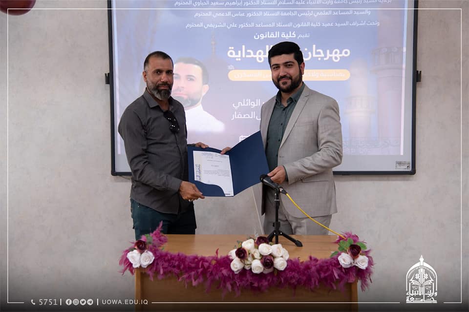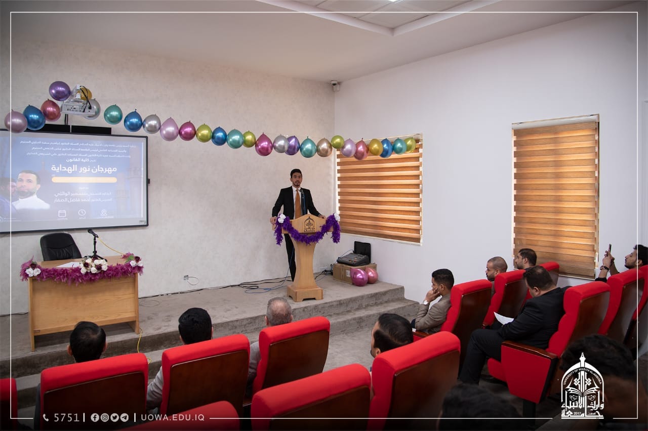 A photographic glimpse of the Nur Al-Huda Festival organized by the College of Law at the University of Warith Al-Anbiyaa, commemorating the birth of Imam Hassan Al-Askari (peace be upon him). Dr. Ahmed Al-Saffar delivered a lecture on the illustrious biography of Imam Hassan Al-Askari, in addition to a performance by the Hussaini eulogist Samir Al-Wa'ili.