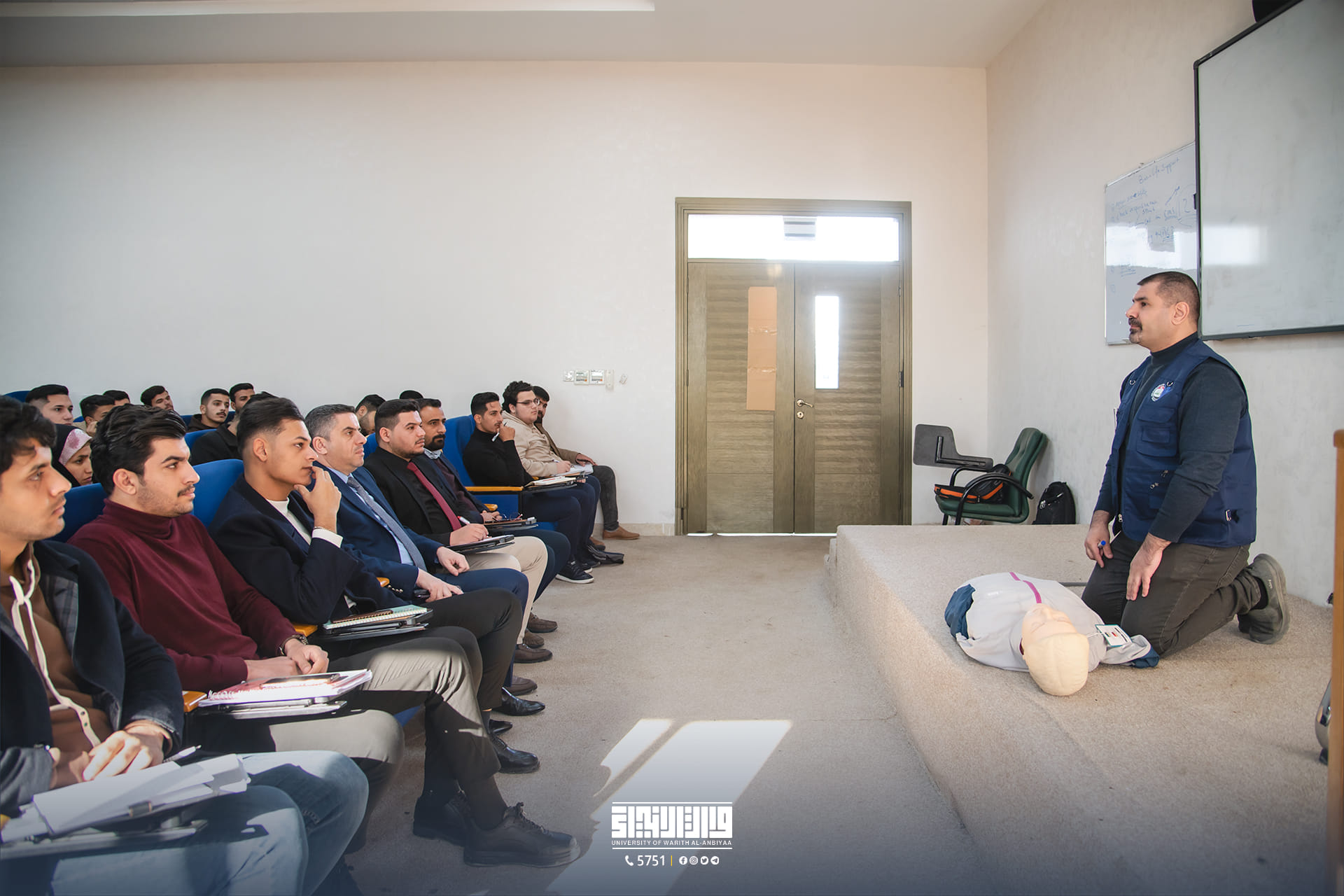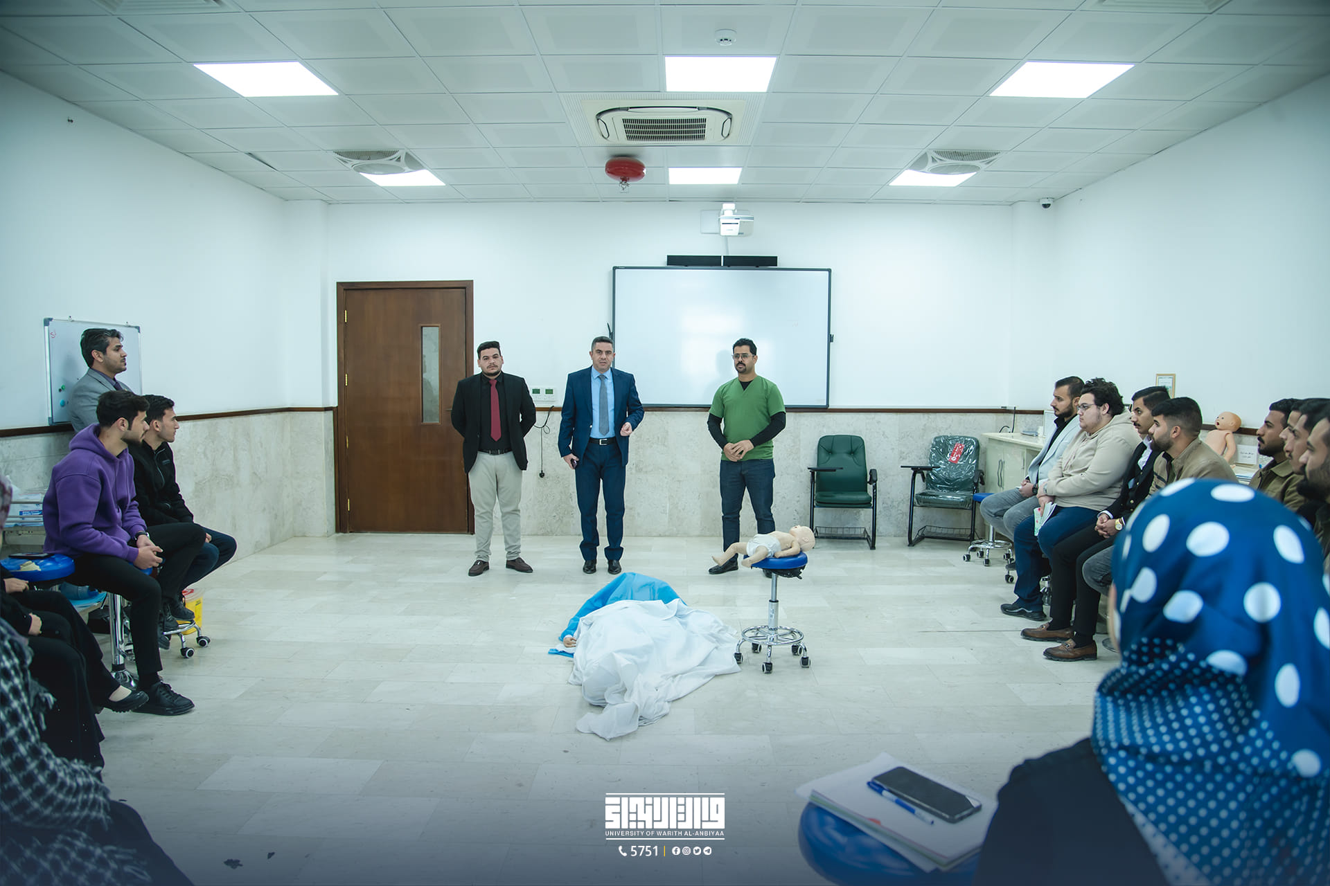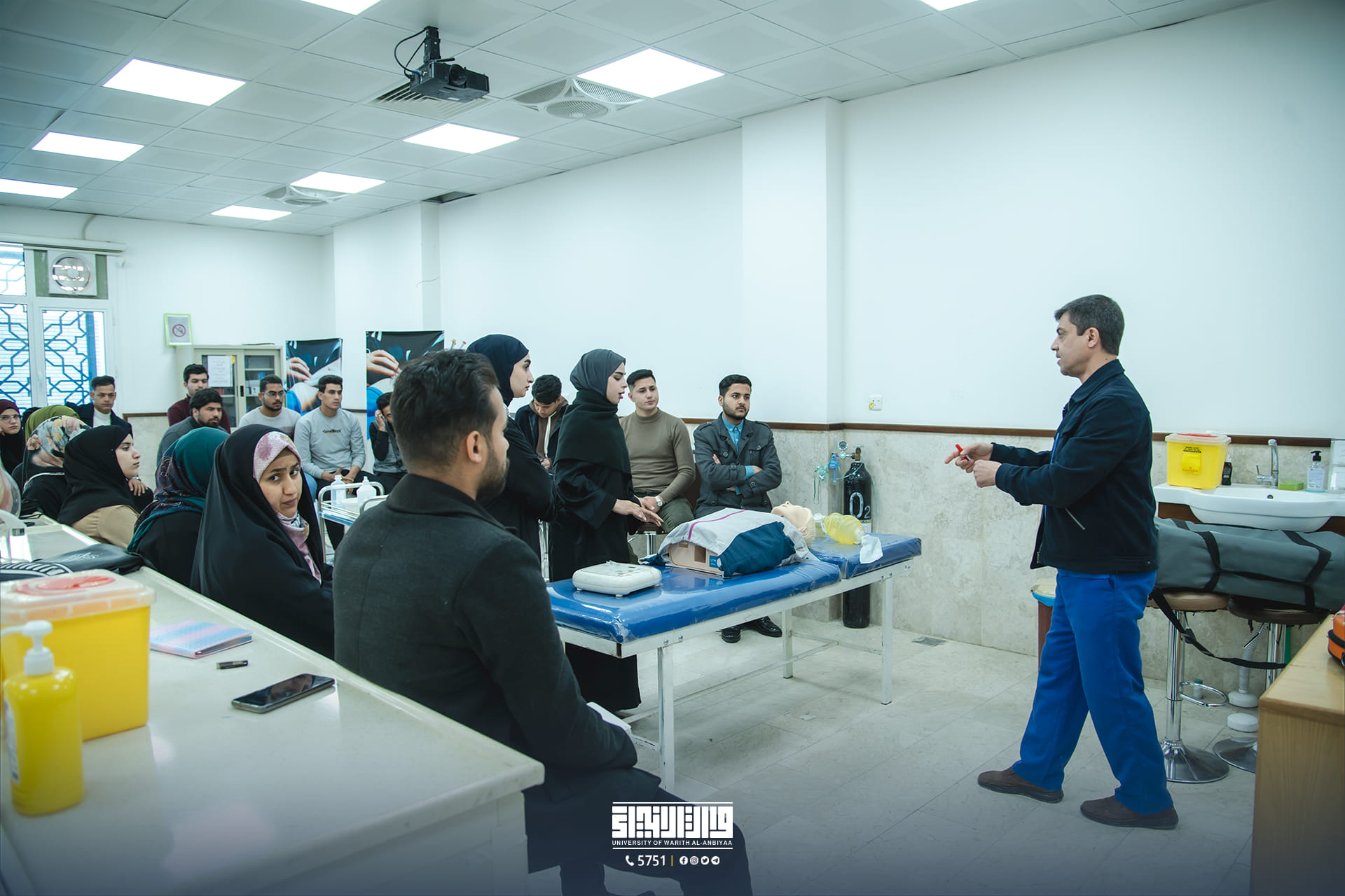 Warith Al-Anbiyaa University is hosting a training workshop titled "Basic Life Support," with the presence of Mr. Dean of the College of Nursing, Professor Dr. Murtadha Al-Jubouri. This workshop is part of a series of training events organized by the college for its students.