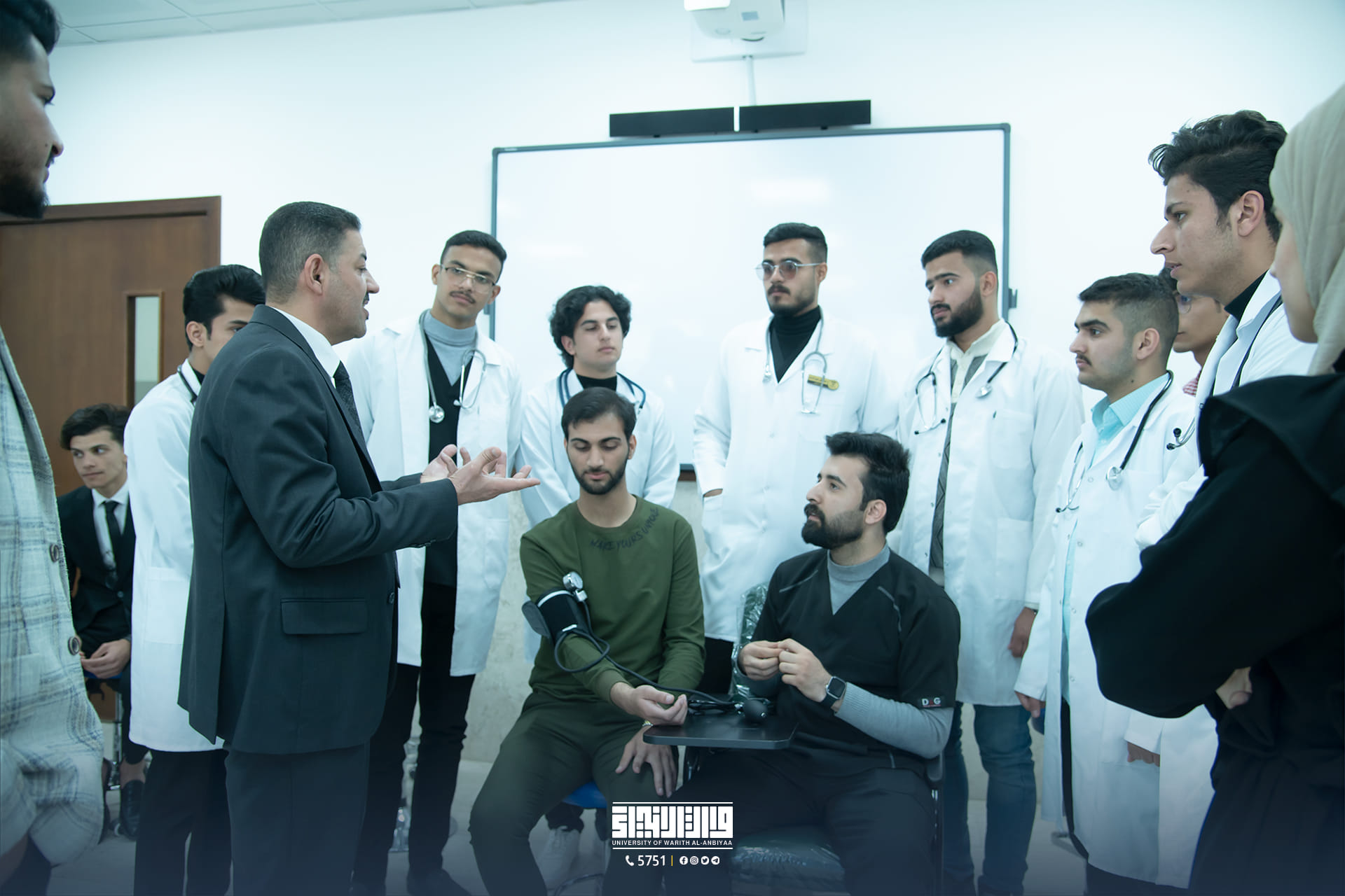 In the presence of the Dean of the College, Professor Dr. Ali Abd Saadoun, the College of Medicine at the University of Warith Al-Anbiyaa (Peace be upon him), in collaboration with the Health Department at the Holy Shrine of Imam Hussain, organized the "Intensive Training Course for Medical Units during the Blessed Shaabanian Pilgrimage." The course was attended by a number of students from the College of Medicine and the College of Nursing who volunteered to serve the visitors coming to the holy city of Karbala.