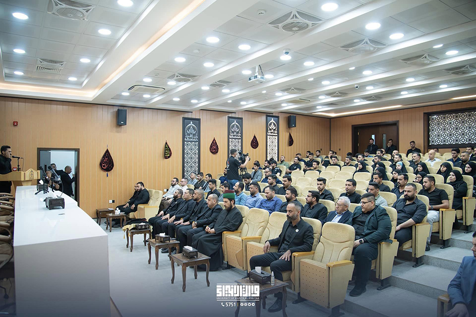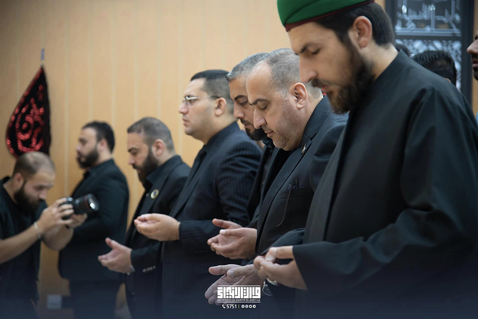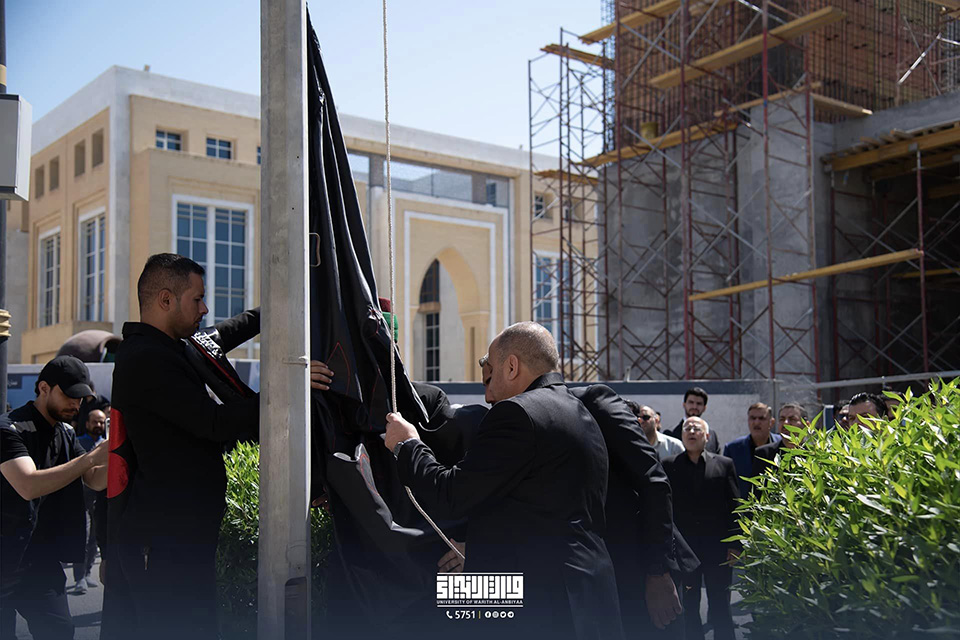 In collaboration with the Youth Care Centre of the Department of Human Resources Development at the Holy Shrine of Imam Hussein (PBUH), the University of Warith Al-Anbiyaa (PBUH) commemorated the ceremony of raising the black flag of Imam Hussein (PBUH) on the university campus. The university presidency and a number of teaching and professional staff attended the ceremony.