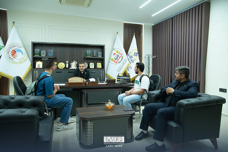The University of Warith Al-Anbiyaa (PBUH) received a delegation of Egyptian students as part of the Student Exchange Programme for summer training. The Vice-President of the University for Scientific Affairs, Professor Dr. Waqid Al-Moussawi, and the Dean of the College of Nursing, Professor Dr. Murtada Al-Jubouri, met with the international students to discuss the training programmes that were prepared in cooperation between the Office of the Vice-President of the University and the College of Nursing.
