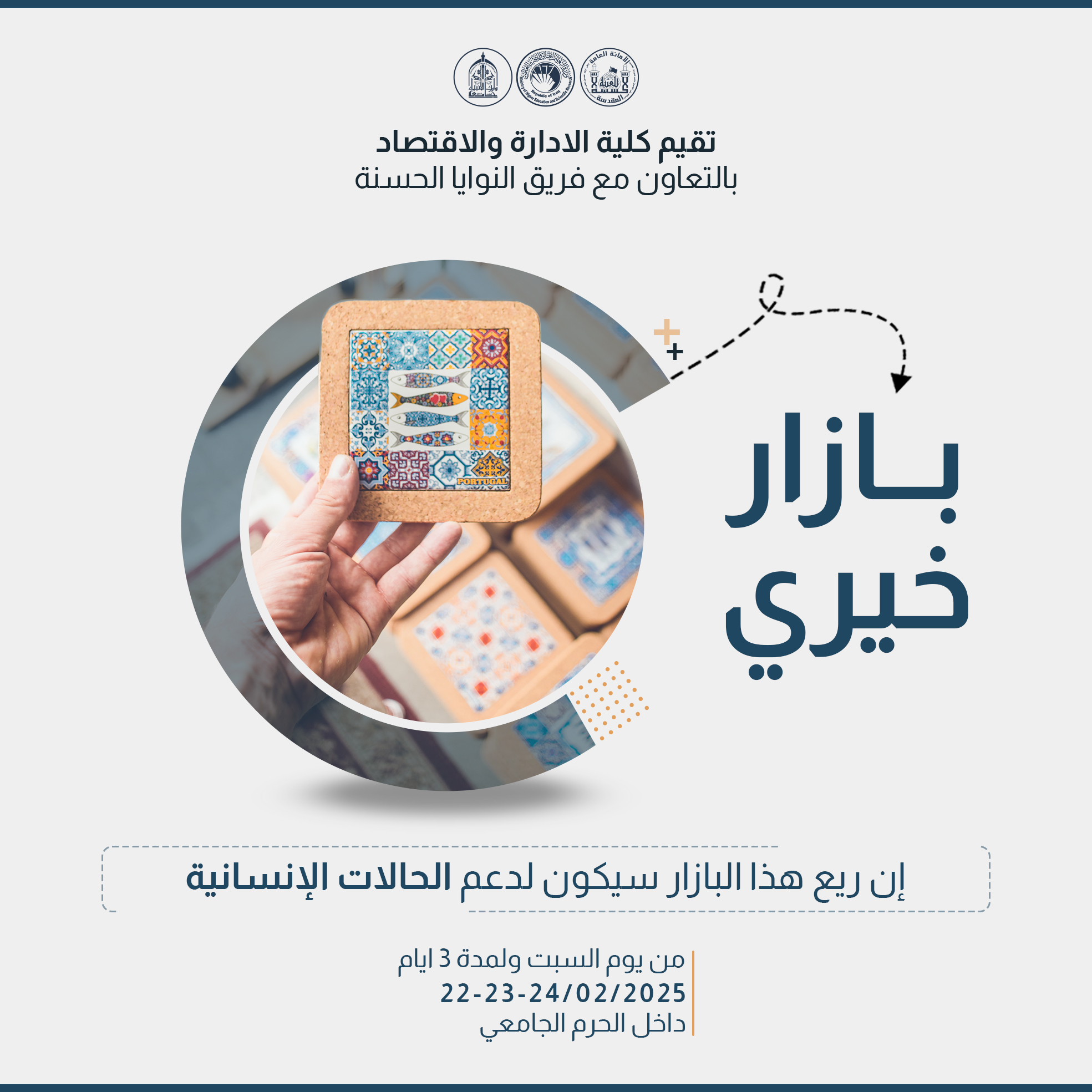 The College of Administration and Economics, in collaboration with the Goodwill Team, is organizing a charity bazaar at Warith Al-Anbiya University  within the university campus. The event will commence on Saturday, February 22, 2025, and will run for three days.