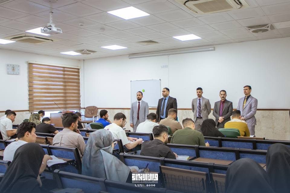 The exams for the academic year 2024-2025 at the Faculty of administration and economics, University of Warith Al-Anbiyaa, in accordance with the approved ministerial regulations and instructions, in an atmosphere dominated by discipline and organization, and with direct follow-up by the university presidency to ensure the efficient and smooth conduct of the examination process .