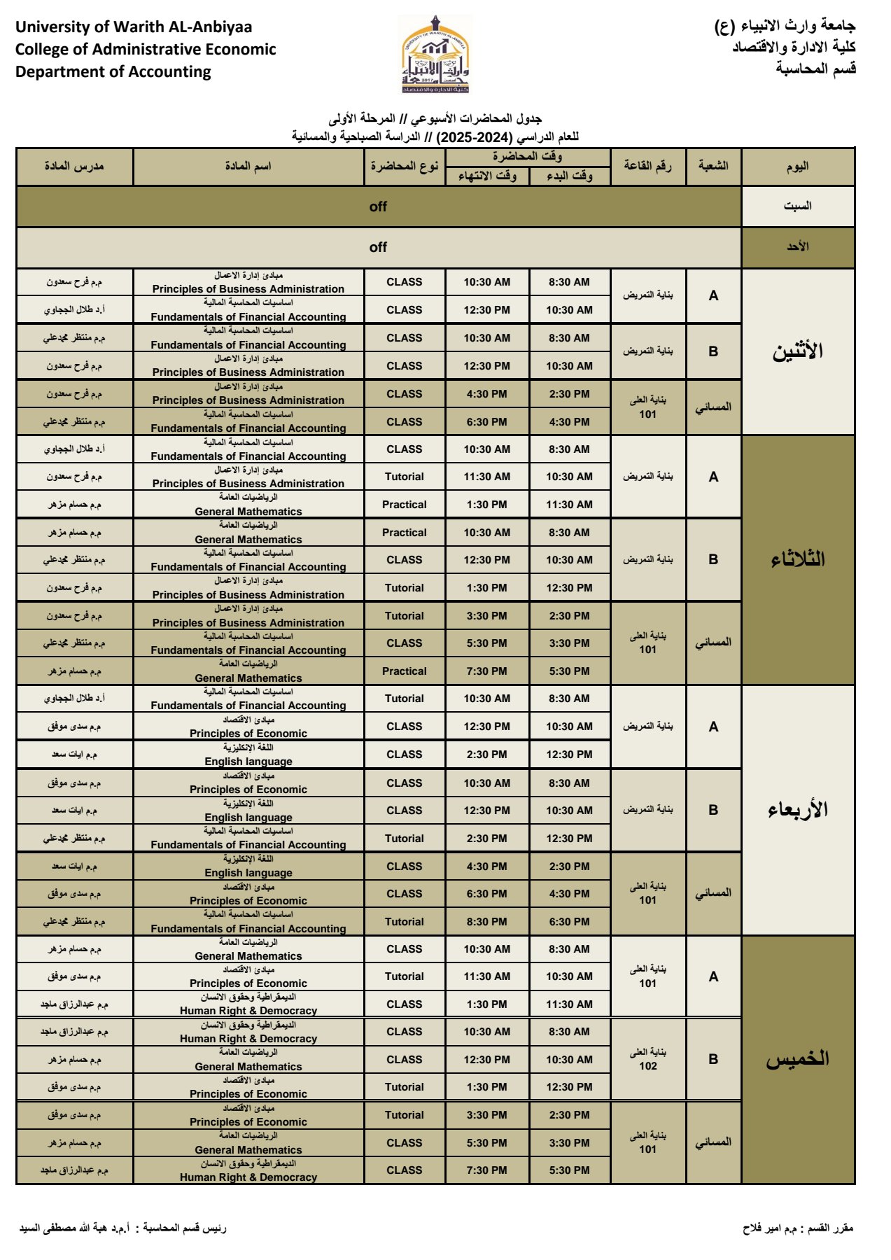 University of Warith Al-Anbiyaa (PBUT)College of Administration and EconomicsDepartment of Accounting