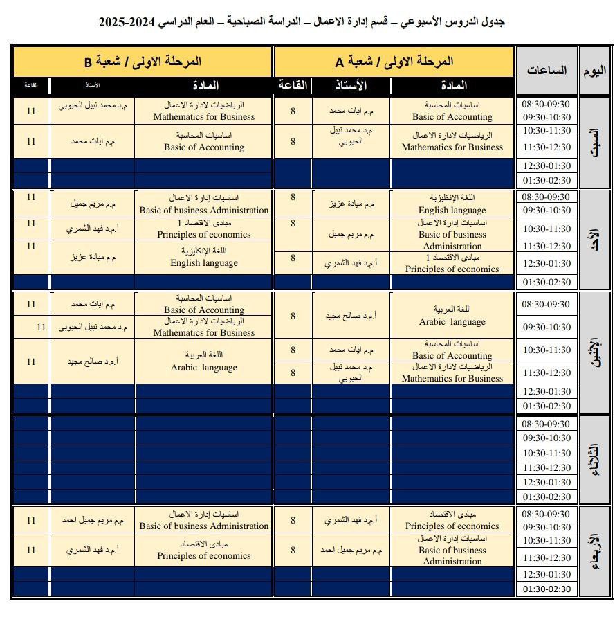 08:30-09:30: Principles of Economics 1 – Assist. Prof. Dr. Fhad Al-Shammari