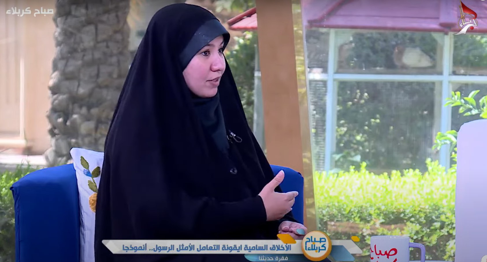 On Monday, 9/16/2024, Karbala TV hosted Dr. Nour Al-Saedi, a lecturer at the College of Islamic Sciences at the University of Warith Al-Anbiyaa (PBUH), in its live program "Sabah Karbala." The meeting focused on the topic of "High Morals, an Icon of Optimal Interaction," on the occasion of the birth of the Prophet Muhammad (PBUH).