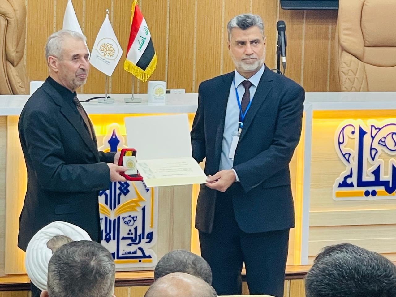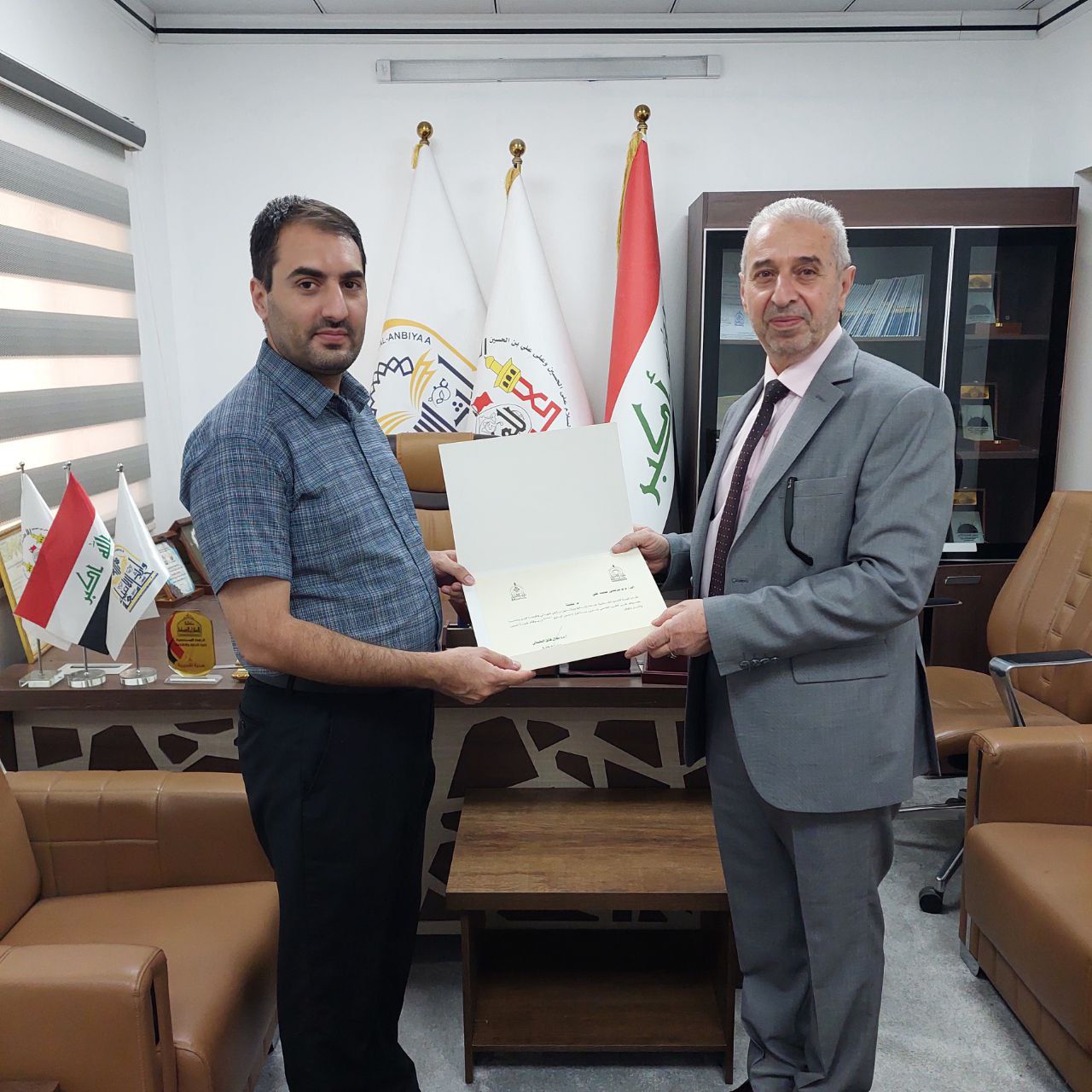 Professor Dr. Iyad Karim Abdul Hassoun Al-Salahi Al-Ibrahimi, a faculty member at the College of Islamic Sciences at the University of Warith Al-Anbiya, was selected to be a member of the Arbitration Board of the Journal of "Our Manuscripts" issued by the Department of Intellectual and Cultural Affairs at the Holy Shrine of Imam Ali.