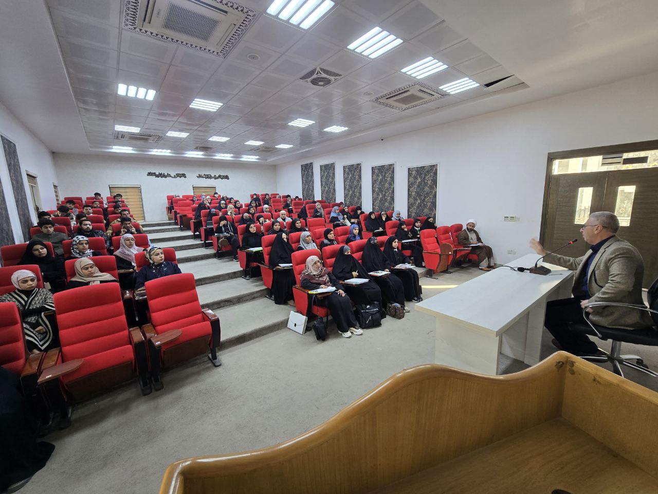 Within the framework of strengthening the ties between the Deanship of the College and new students, the Dean of the College of Islamic Sciences at the University of Warith Al-Anbiya (peace be upon him), Assistant Professor Dr. Talal Faeq Al-Kamali, met with first-year students on Tuesday, 12/24/2024.