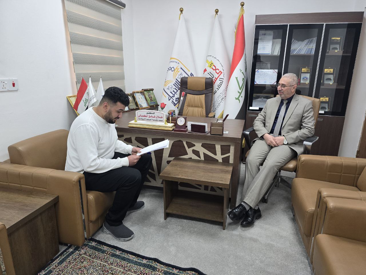 As part of his keenness to enhance communication with students and encourage them to achieve academic excellence, Dr. Talal Faeq Al-Kamali, Dean of the College of Islamic Sciences at Warith Al-Anbiya University, met a student from the College of Media on Monday.