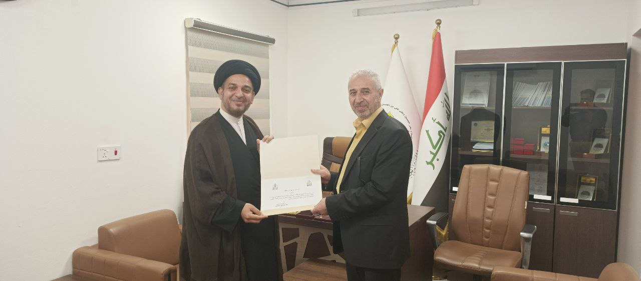 On Tuesday 1/10/2024, the Dean of the College of Islamic Sciences, Dr. Talal Al-Kamali, honoured Assistant Professor Mr. Ibrahim Al-Moussawi on the occasion of obtaining the academic title "Assistant Professor".