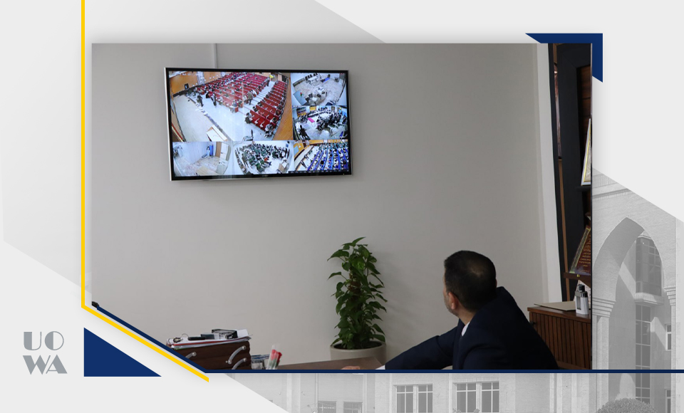 Electronic monitoring of the progress of exams at the College of Medicine at Warith Al-Anbia University was carried out under the supervision of Professor Dr. Ali Abdul Saadoun, Dean of the College, and the follow-up of Assistant Professor Dr. Laith Al-Hussaini, Assistant Dean for Scientific Affairs, and Dr. Anwar Al-Dahan, Assistant Dean for Administrative Affairs, and in the presence of employees of the Digital Division.