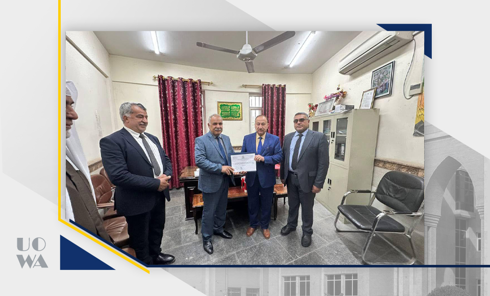 The College of Medicine, Warith Al-Anbia University, in implementation of the scientific cooperation agreement, sent Professor Dr. Talib Jawad (Director of the Accreditation Unit at the College and a member of the National Council for Institutional Accreditation) upon their request to be a guest at the esteemed University of Diyala Council, conveying the greetings and wishes of the Presidency of Warith Al-Anbia University and the Deanship of the College of Medicine. The questions and inquiries of some members of the Council at the University of Diyala regarding institutional accreditation were clarified and answered. A comprehensive explanation of some points was provided by him. The President of the University of Diyala and those present praised the mutual cooperation between the two universities and called for increasing scientific communication and mutual visits at the level of professors and students. He wished the University of Warith Al-Anbia continued success.