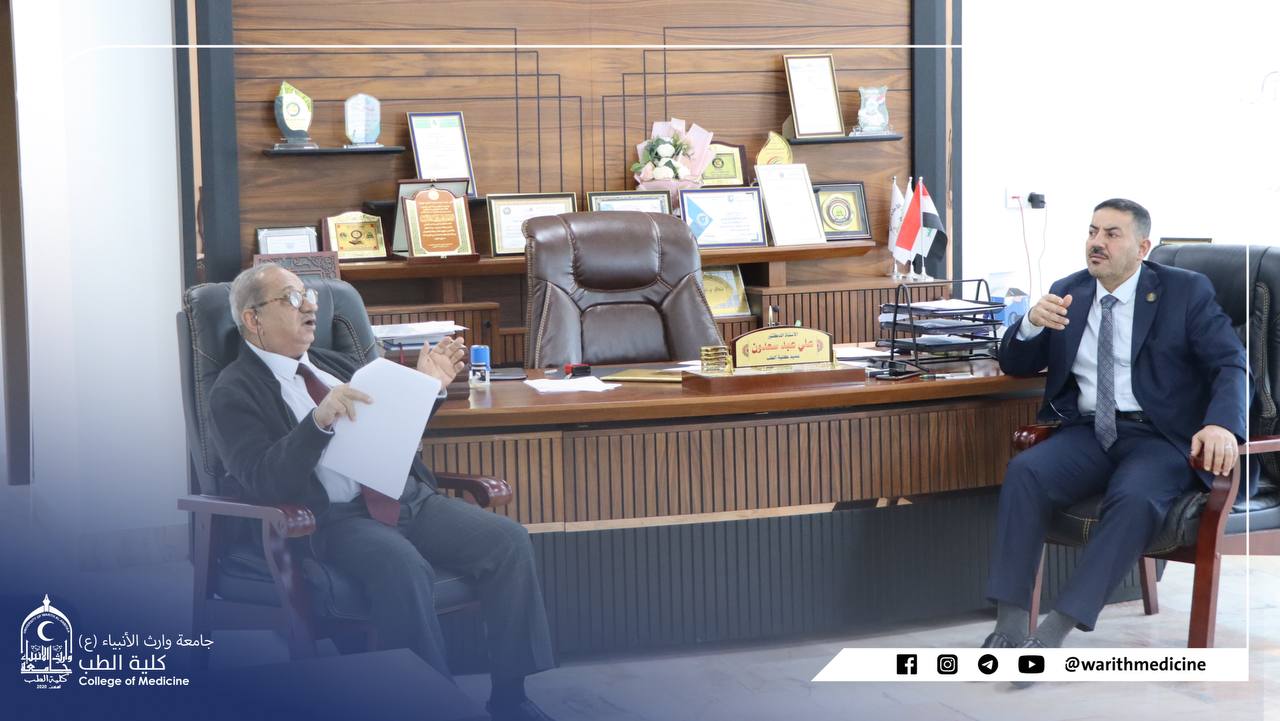 Prof. Dr. Ali Abdul Saadoun Al-Ghazi, Dean of the College of Medicine, and Associate Professor Dr. Laith Mohammed Abbas, Scientific Assistant, held a meeting with the college staff to discuss the latest developments and follow up on the progress of work.