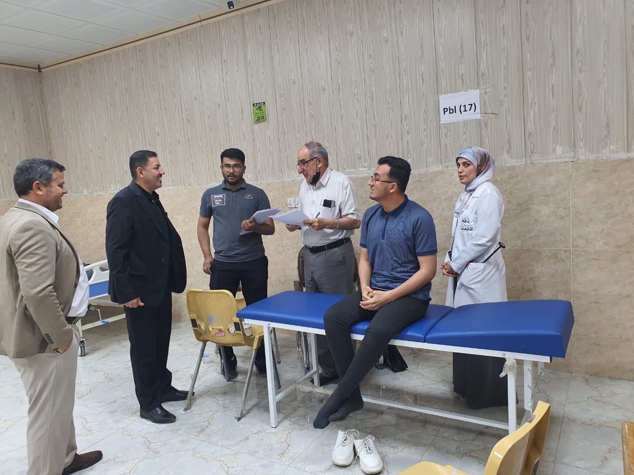Within the framework of cooperation, which includes twin formation, the professors of the Surgery Branch at the College of Medicine, University of Heir al-Anbiya, peace be upon him, participated with the Surgery Branch at the College of Medicine, University of Karbala, in taking the OSCE practical exam at the end of the course for students of the fourth stage of the Karbala College of Medicine in the subject of general surgery.