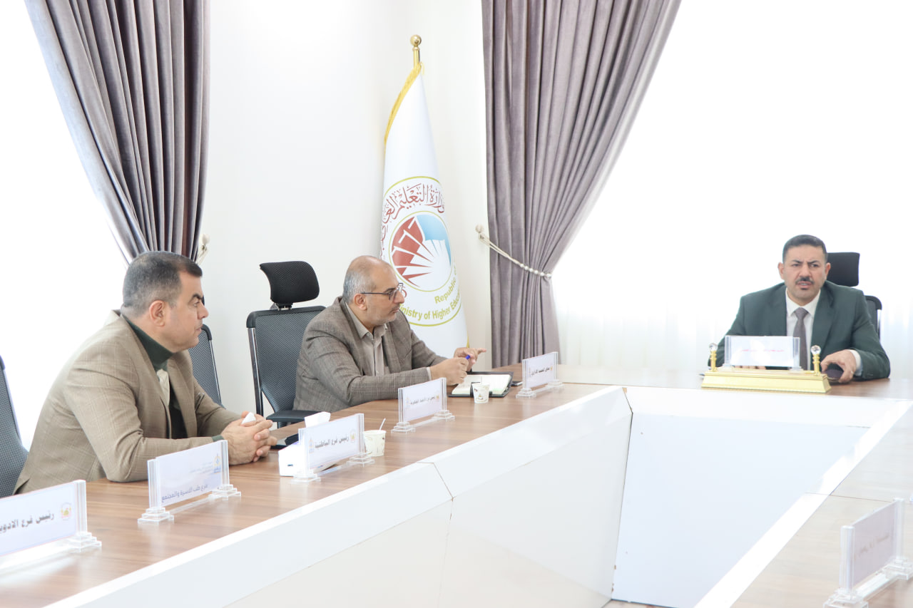 The Dean of the College of Medicine, represented by the Dean of the College, Prof. Dr. Ali Abd Saadoun, the Assistant Dean for Scientific Affairs, Lecturer Dr. Riyad Hanioh, and the Associate Dean for Administrative Affairs, Prof. Dr. Ali Mansour, met with the heads of the clinical branches to find out the latest preparations for the new academic year and complete the schedules for the fourth stage and the distribution of students.