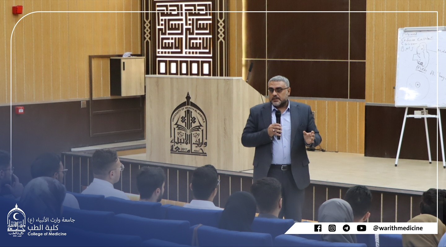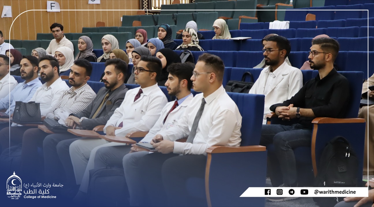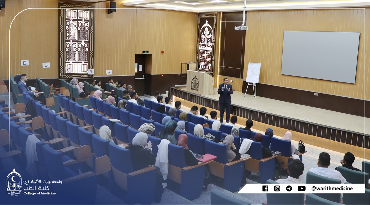 The Dean of the College of Medicine at Warith Al-Anbiya University (peace be upon him), Professor Dr. Ali Abdul Saadoun Al-Ghazi, and the Assistant Dean for Scientific Affairs, Professor Dr. Laith Mohammed Abbas, held a meeting with the college's teaching assistants to discuss the current state of academic and administrative work within the college and the role of teaching assistants in supporting the educational process.