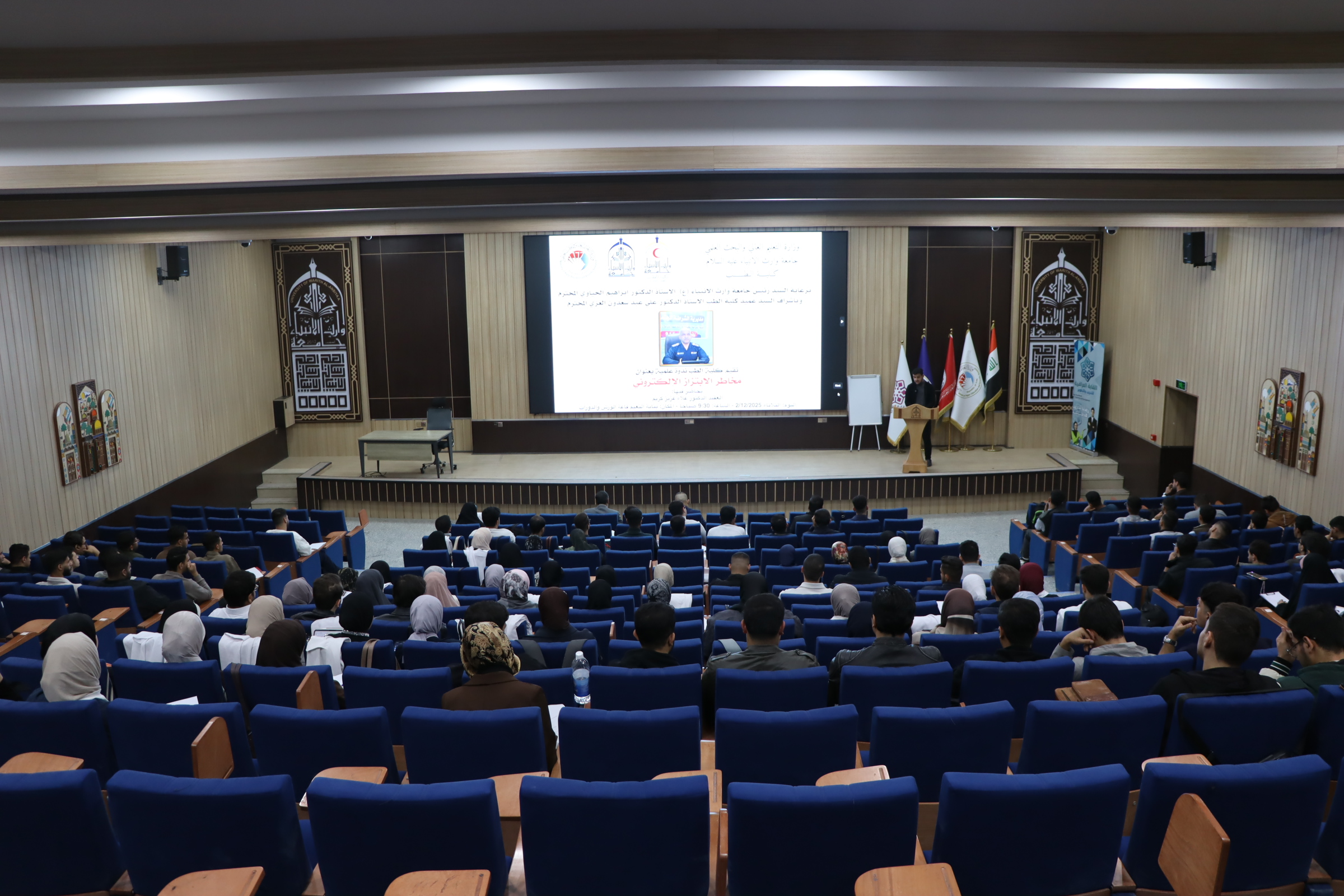 An awareness lecture on the dangers of cyber extortion was presented by Colonel Dr. Alaa Aziz Karim at the College of Medicine.