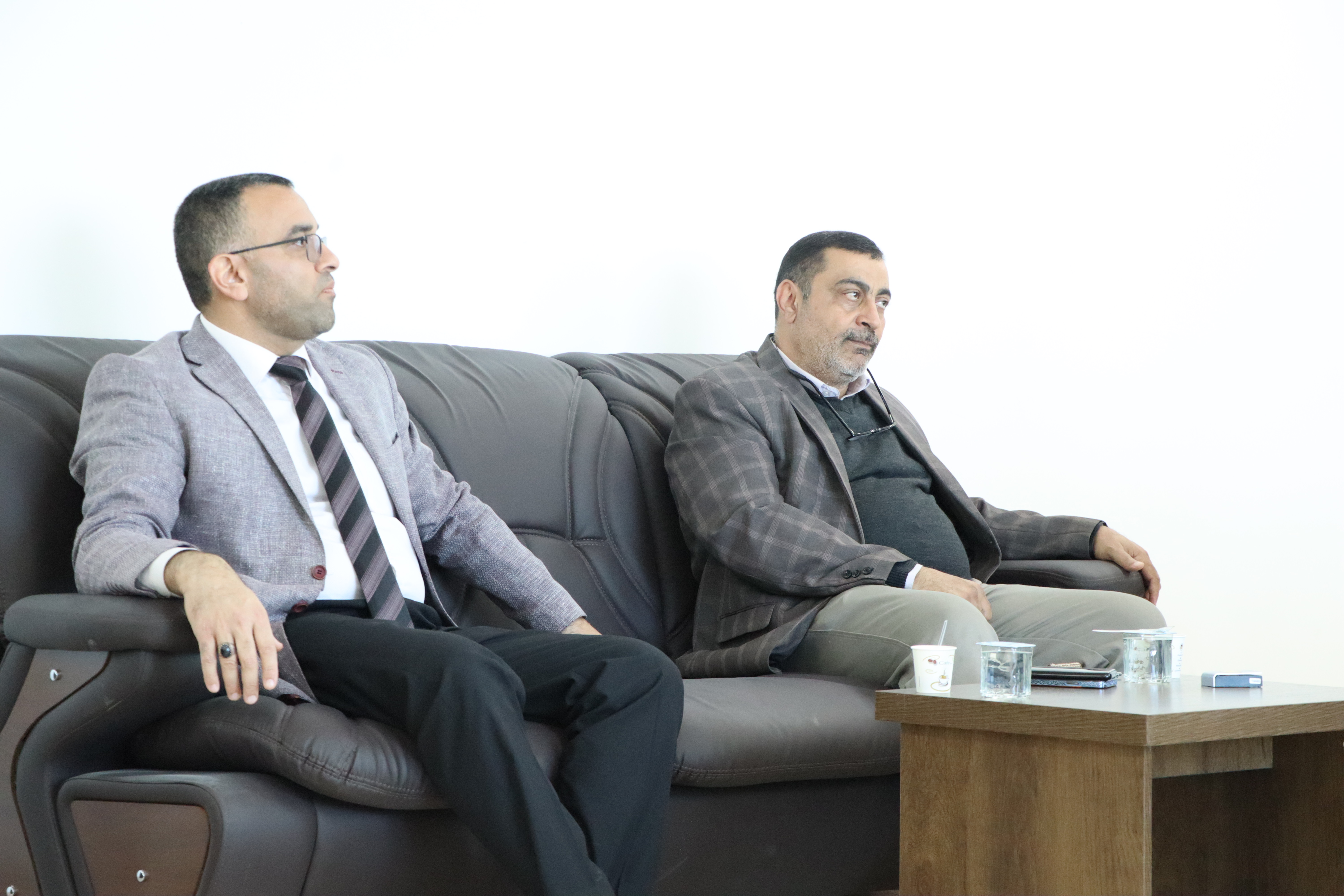 The respected Dean of the College of Medicine, Professor Dr. Ali Abd Saadoun Al-Ghazi, and the Honorable Assistant Dean, Professor Dr. Ali Mansour, met with the committee of evaluation experts from the College of Medicine, University of Karbala, headed by the Dean of the College of Medicine, the respected Professor Dr. Riyad Dhihud, and the respected members of the committee.