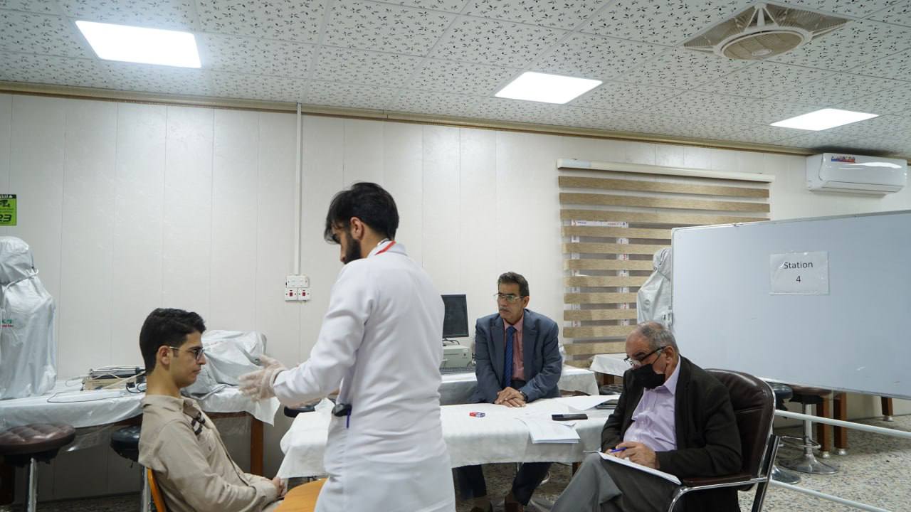 Within the framework of cooperation, which includes twin formation, the professors of the Surgery Branch at the College of Medicine, University of Heir al-Anbiya, peace be upon him, participated with the Surgery Branch at the College of Medicine, University of Karbala, in taking the OSCE practical exam at the end of the course for students of the fourth stage of the Karbala College of Medicine in the subject of general surgery.