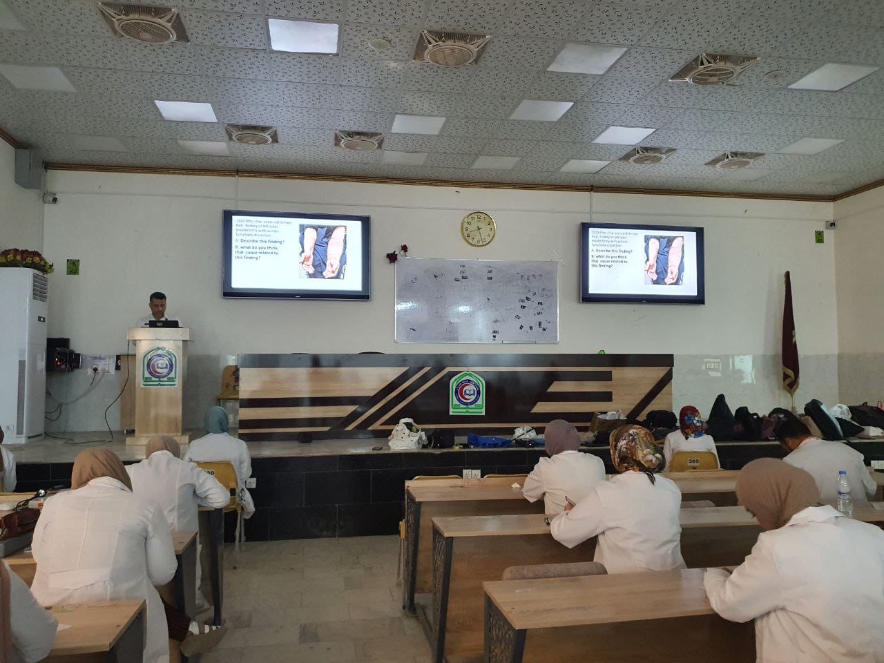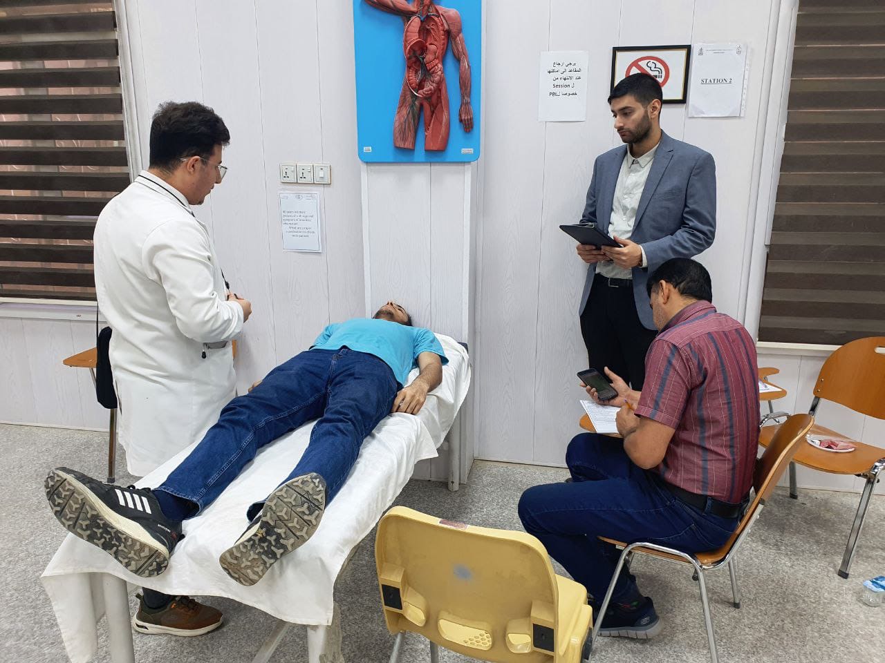 Surgery (OSCE) was conducted for fourth-stage students. The exam was held in the presence and supervision of the esteemed Dean of the College of Medicine, Professor Dr. Ali Abd Saadoun Al-Ghazi, and the esteemed Assistant Dean for Scientific Affairs, Professor Dr. Ali Mansour.