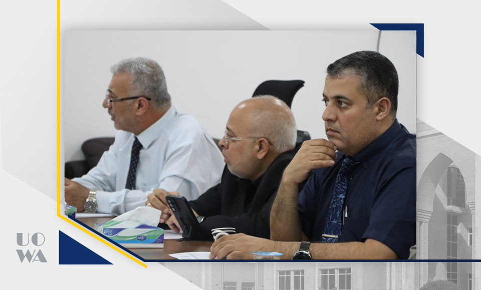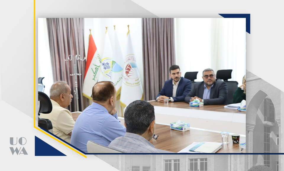 The Deanship of the College of Medicine at Warith Al-Anbiya University (peace be upon him) held an expanded meeting with the Head of the Quality Assurance Department at the University Presidency. The meeting was attended by the Dean of the College, Professor Dr. Ali Abdul Saadoun Al-Ghazi, the Scientific Assistant, and the heads of the Quality Assurance, Accreditation, and Digital Divisions.