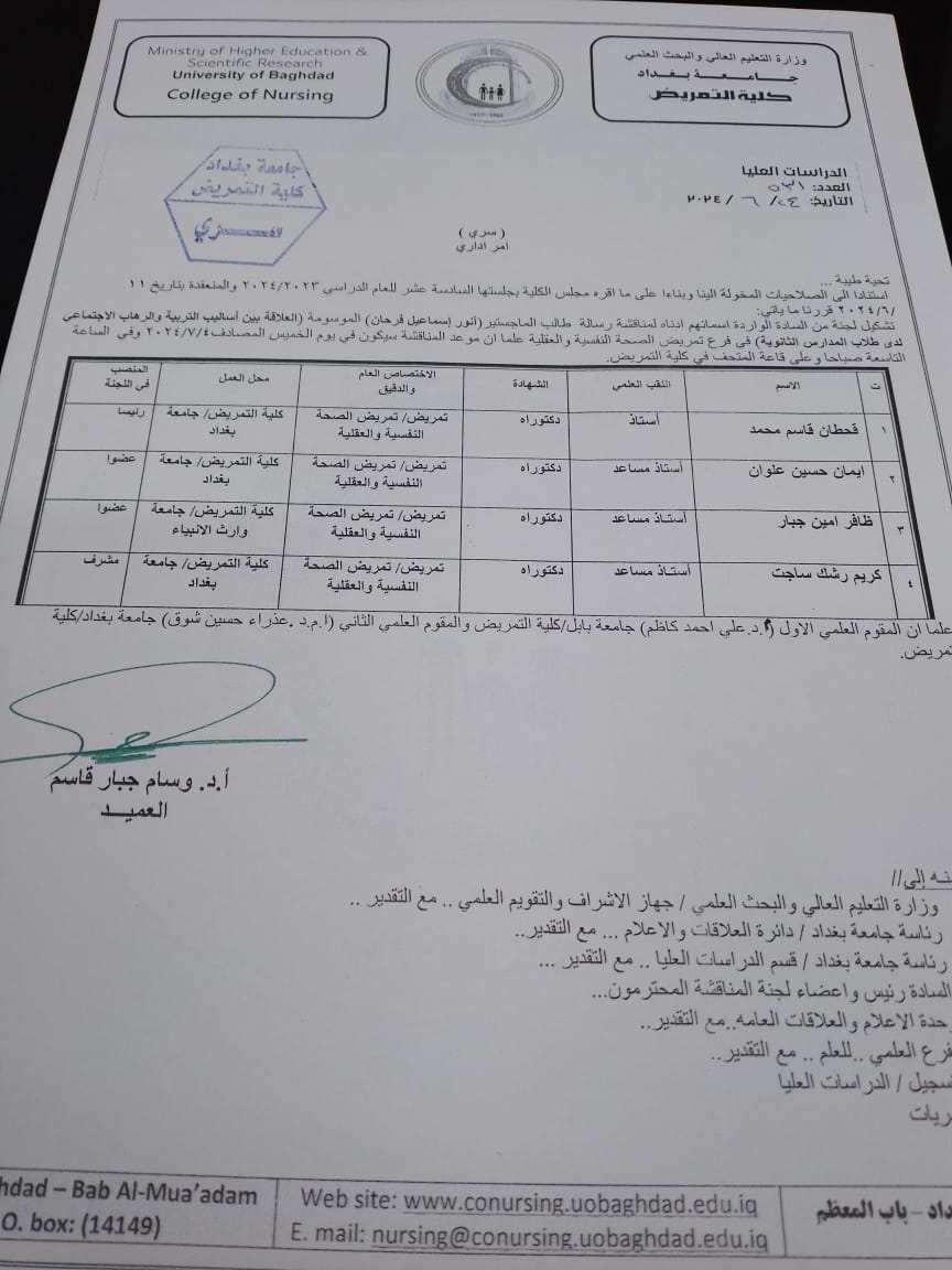 The Dean of the College of Medicine chairs a discussion committee at the University of Basra.