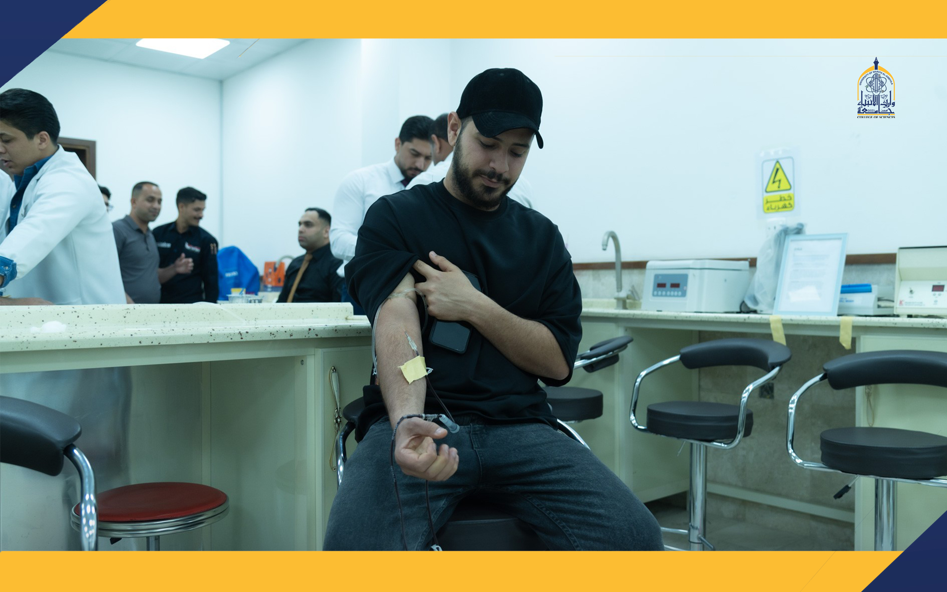 The College of Sciences at the University of Warith Al-Anbiyaa (peace be upon him), in collaboration with the Karbala Health Department / Blood Bank, organized an exceptional humanitarian campaign for blood donation. The campaign witnessed extensive participation from the faculty members and students of the college, emphasizing the values of humanity and community solidarity. Through this noble initiative, the college aims to contribute to saving the lives of patients and those in need of blood, particularly cancer patients and individuals undergoing emergency surgical operations.