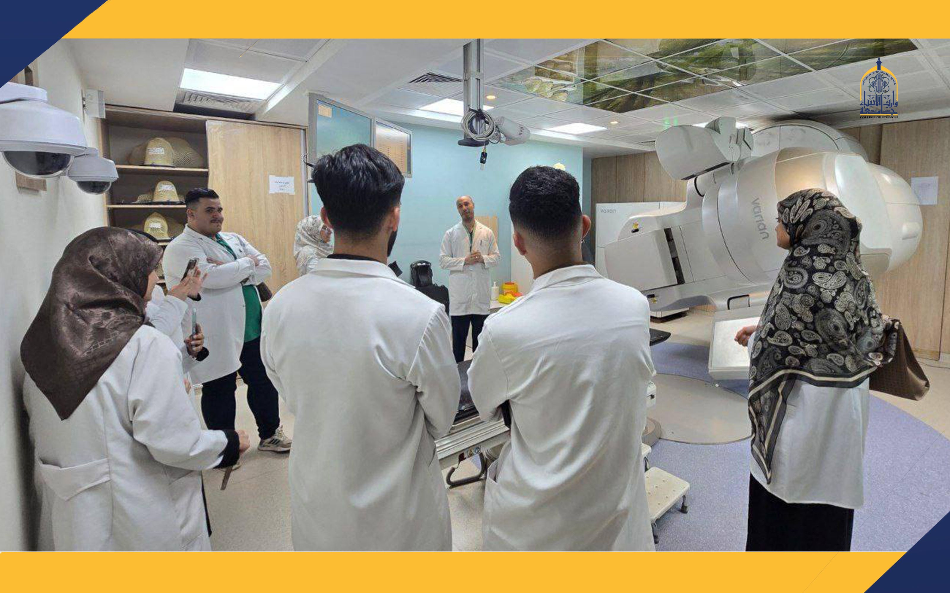 The Department of Medical Physics at the College of Science – University of Warith Al-Anbiyaa (peace be upon him) organized a scientific visit to the Warith International Cancer Treatment Center, affiliated with the Holy Hussain Shrine. The visit aimed to explore the modern equipment and therapeutic protocols adopted for the diagnosis and treatment of cancer.