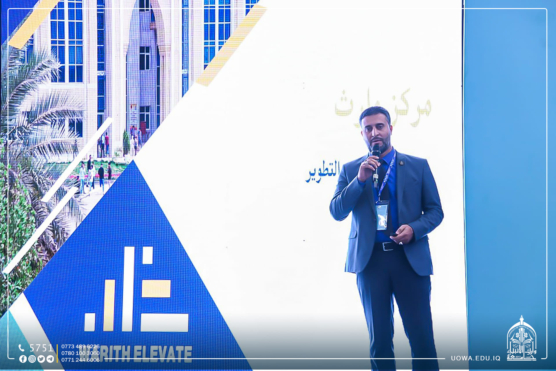 The University of Warith Al-Anbiyaa continues to actively present numerous scientific and academic activities within the "Iraq Education Exhibition and Conference." The Warith Elevate team provided an explanation of the center's services for university graduates and students, detailing how they contribute to their qualification and training to prepare them for the job market. The presentation also covered the university's support for the "Government Entrepreneurship Initiative" by organizing training courses within the university.