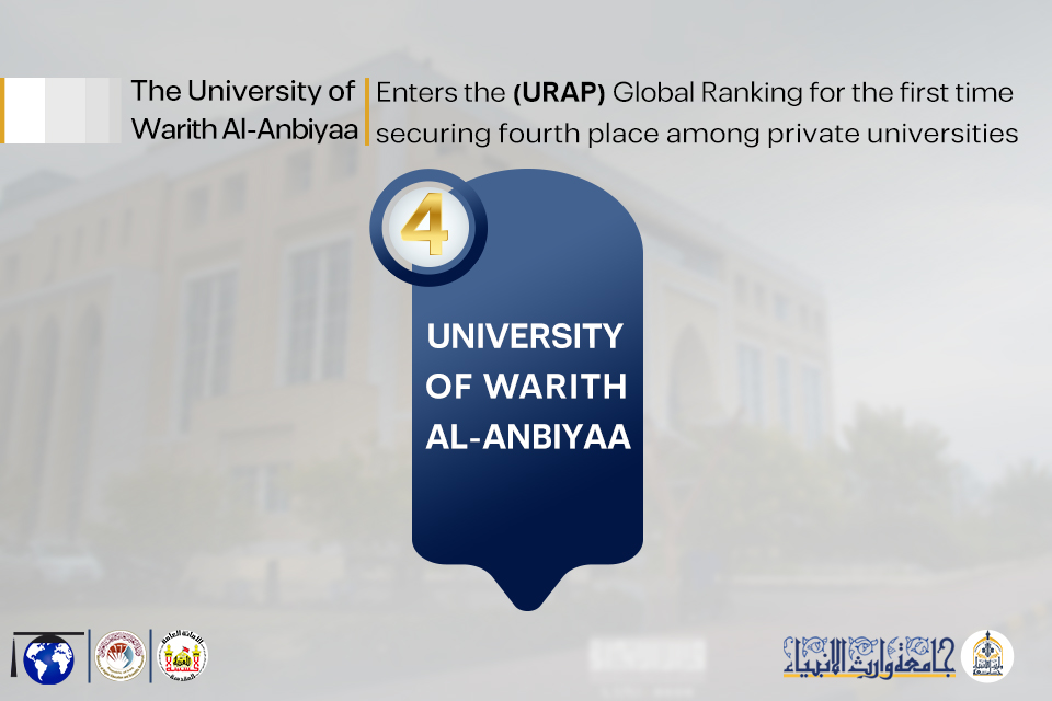 The University of Warith Al-Anbiyaa (PBUH) has achieved a new academic milestone by entering the University Ranking by Academic Performance (URAP) for the first time, securing fourth place among private universities in Iraq and leading as the top-ranked university in Karbala.