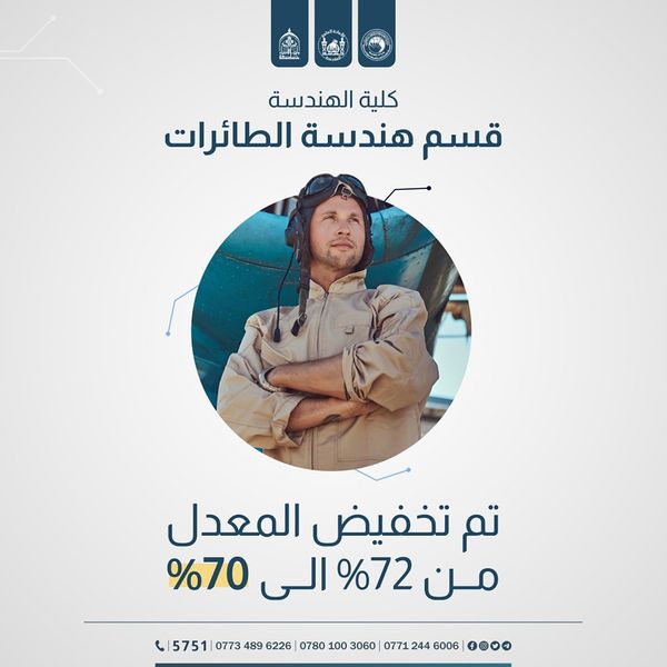 Among the newly established departments at the University of Warith Al-Anbiyaa (peace be upon him) is the Aircraft Engineering Department within the College of Engineering, with a reduced admission requirement from 72 to 70.