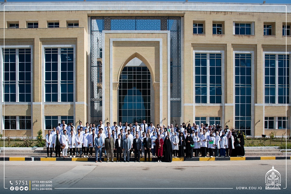 The University of Warith Al-Anbiyaa warmly welcomed a group of students from Al-Furat Al-Awsat Technical University, specifically from the Technical Institute's Department of Community Health. The students went on a scientific visit to the university, during which they had the opportunity to explore various areas, including the university halls, the Faculty of Medicine, and the laboratories. The visit provided them with valuable insights into the university's modern scientific devices, techniques, and tools, fostering a deeper understanding of the advancements in their field of study.